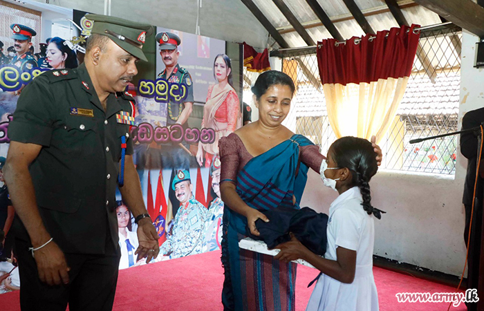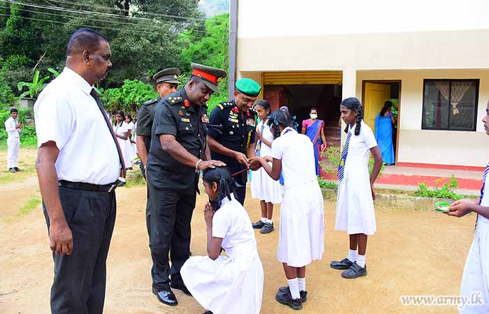 Brigadier Sujeewa Perera, Commander, 591 Infantry Brigade under the directions of Major General Darshana Wijesekara, Commander, SF-MLT and Major General Mahinda Ranasinghe, General Officer Commanding, 59 Infantry Division under the close supervision of Lieutenant Colonel D.K Kaluwadewage, Commanding Officer, 12 Sri Lanka Light Infantry joined the distribution of those incentives to students in the school premises.
