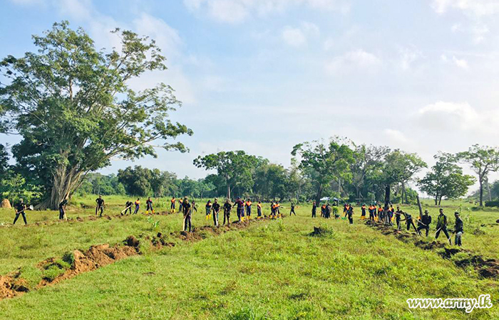 20 Sri Lanka Sinha Regiment and 18 Gemunu Watch troops of the 121 Brigade under the 12 Division of the Security Force HQ – Central (SFHQ-C) threw their full weight behind a national reforestation programme inside the Yala sancturary, launched by the Ministry of Wildlife and Forest Conservation where troops joined hands with others to plant some 60,000 saplings in 600 hectares within the 45 days.