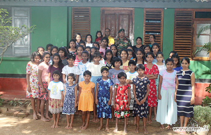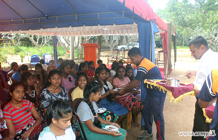 45 girls at Dharmapala Bosath Girls’ Home at Hingurakgoda, Polonnaruwa were the recipients of a delicious lunch plus gift parcels of sanitary items on 27 December 2022 after the troops of 7 Sri Lanka Artillery (SLA) of the 233 Infantry Brigade of the 23 Division under command to the Security Force Headquarters - East, organized the gesture with sponsorship, extended by a hotel owner.