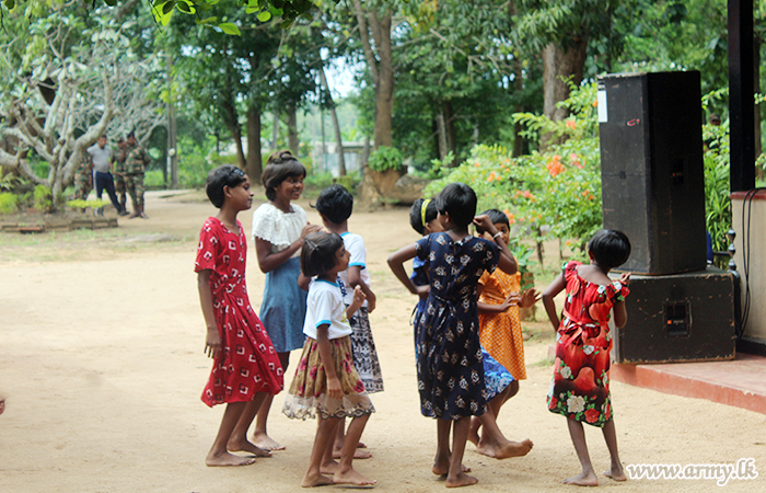 At the end of the main programme, a musical session tuned by the Calypso band of the 7 Sri Lanka Artillery Beat entertained those children who also showcased their singing and dancing talents after joining the musicians.