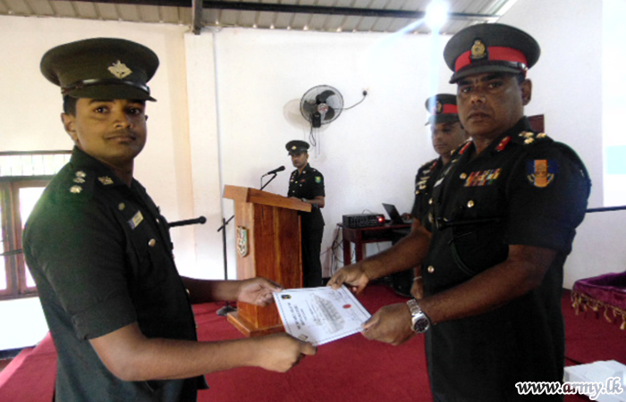 Nine young officers having successfully completed their Young Officers' (YO) Course No. 11 at the Mechanized Infantry Training Center (MITC) received their certificates during an awarding ceremony, held at the MITC premises in Periyakadu on Saturday (07).