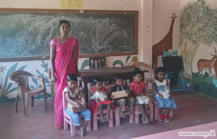 6 Sri Lanka National Guard (SLNG) troops of the 682 Infantry Brigade under the 68 Infantry Division of the Security Force HQ- Mullaittivu using their own funds launched a project to provide five pairs of school shoes, each pair, worth Rs. 3300.00 for needy students studying at Mary Pre-school, Walaimadam in Puthukkudiyiruppu on Monday (Jan 09).