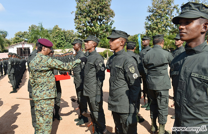 Major General Shanaka Rathnayake, General Officer Commanding of 53 Infantry Division, Major General Wipula Ihalage, General Officer Commanding of 58 Infantry Division, Brigadier Subath Sanjeewa, Commander, Air Mobile Brigade, Senior Officers, Officers witnessed the Passing Out Parade.