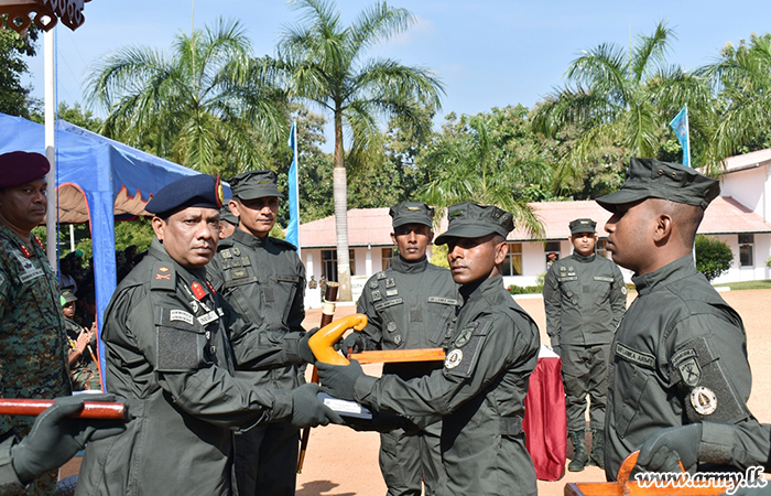 03 officers and 140 Other Ranks serving under the 1 Corps followed the course. Lance Corporal J.S.C Jinarathne received the award as the Best in the Course and Corporal W.M.D.N Bandara was awarded the certificate as the Best student and Best Shooter of the Course.