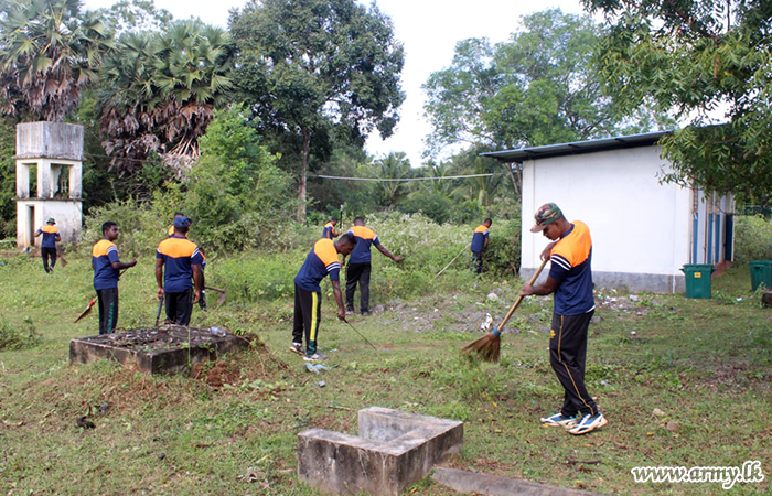 Troops of the 14 Sri Lanka Sinha Regiment (SLSR) of the 641 Infantry Brigade of the 64 Division under command to the Security Force HQ-Mullaittivu with the objective of destroying Dengue mosquito breeding spots inside the Oddusudan Regional Hospital premises conducted a cleaning project on Thursday (12 January).