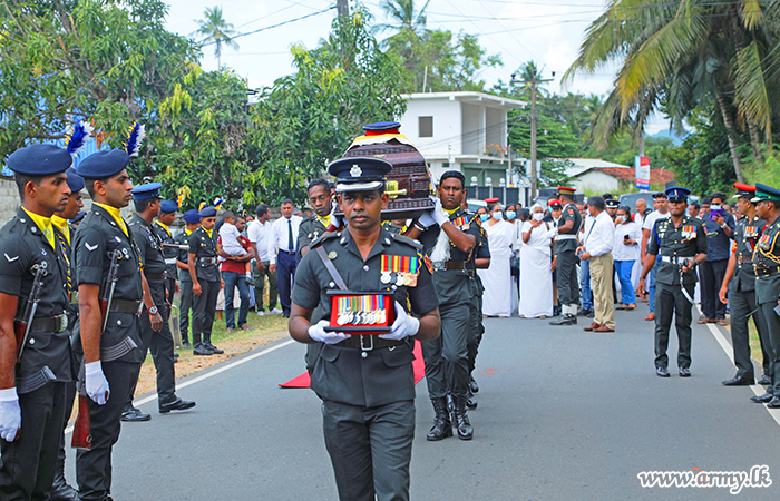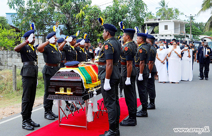 The military funeral of Major General Dammika Kariyawasam (Retd) of the Sri Lanka Army Service Corps (SLASC) who had served the country for more than 33 years took place on Monday (16) at Kurunegala Doratiyawa cemetery amid a gathering of his military comrades and other mourners.