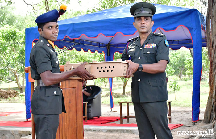 On the same occasion, 3 (V) SLACAL troops, together with the Seva Vanitha Branch of the SLACAL in order to relieve economic burdens gave away relief items, inclusive of school books, dry rations, chickpeas, cultivated mushroom packs etc to most deserving Other Ranks and Civil Employees.