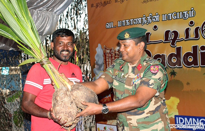 Following the sponsorship, extended by Mr S Madan of Pallai Hindu Tamil Union 552 Infantry Brigade troops, commanded by Brigadier Wijayanath Jayaweera, organized the event following a conceptual guidance given by Major General Prasanna Gunaratna, General Officer Commanding (GOC), 55 Infantry Division.