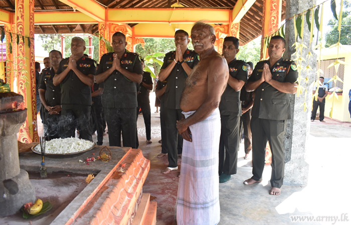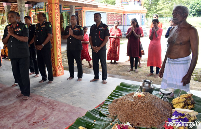 Meanwhile, 65 Infantry Division troops of the Security Force HQ - Wanni offered a special Thai Pongal Pooja at Sthivnayager Alyam Kovil in Alankulam, Mallavi on Sunday (Jan 15). It was done under the guidance of Major General Prasad Edirisinghe, General Officer Commanding, 65 Infantry Division who joined the Pooja with Senior Officers, Officers and Other Ranks. Devotees in the area also participated in the offerings.