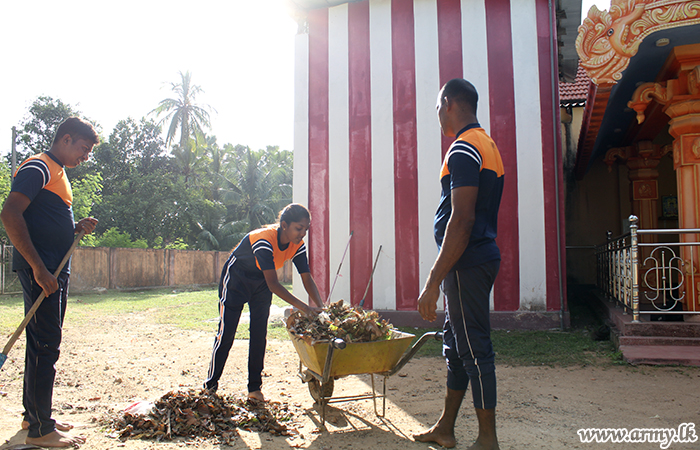 Furthermore, troops of the 5 Sri Lanka Army Service Corps and the 5 Sri Lanka Army Ordnance Corps joined hands to clean the Maradanamadam Kovil area and the Palaly Army Base Hospital staff cleaned the Sri Gnanawairawa Kovil area on Sunday (Jan 15).