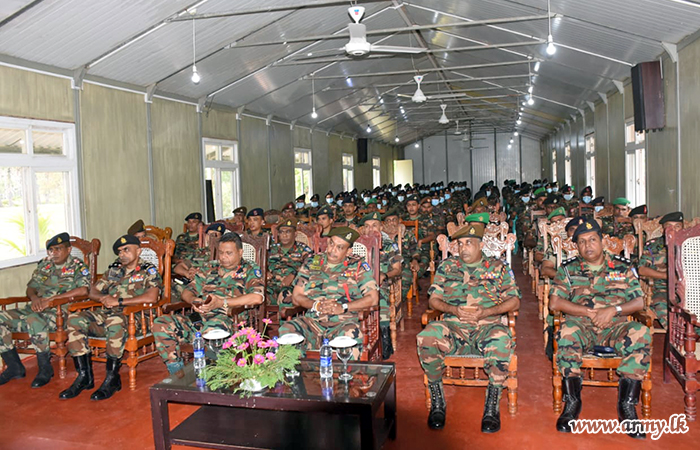 Afterwards, the General Officer Commanding, 64 Division delivered a comprehensive brief on the specific role and tasks of the Division to Major General Darshana Wijesekara before the visiting Commander addressed the troops.