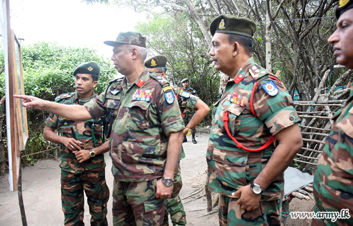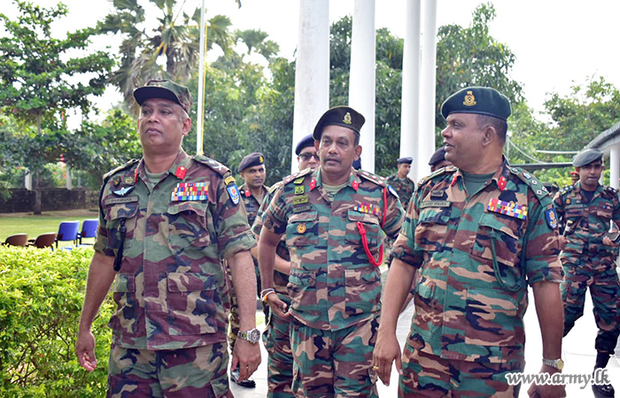 He commenced the visit in the area at first by inspecting the 66 Infantry Division HQ and Pallikuda, Mandagalaru, Pallawarayankaddu and Sangupiddi roadblocks before he reached the end at Kumar Point, just after addressing the Divisional troops at the Division HQ premises.