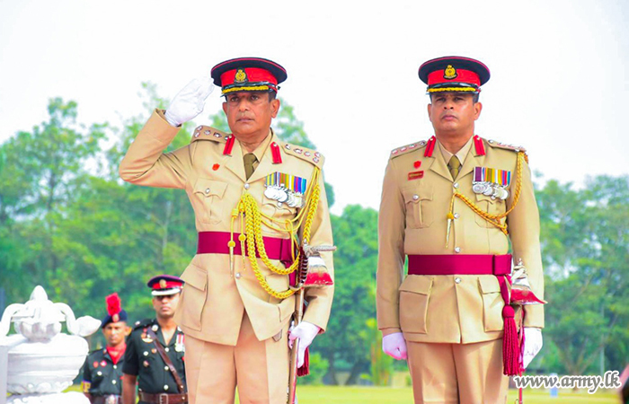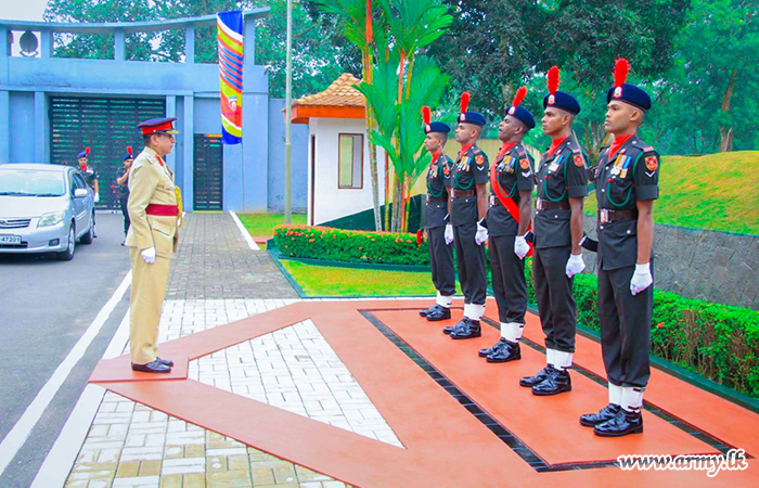 Colonel Suraj Gamage, Deputy Centre Commandant, GW warmly welcomed the Chief Guest of the day and invited him to review the Guard Turnout at the entrance and accompanied him afterwards to the saluting dais to receive the ceremonial parade accorded by the GW troops.