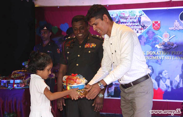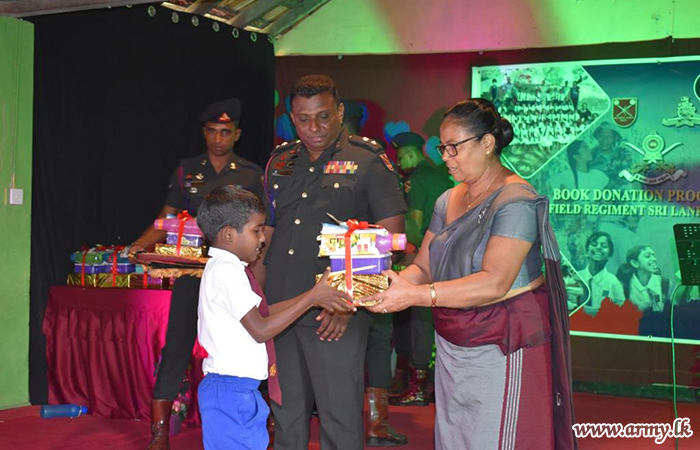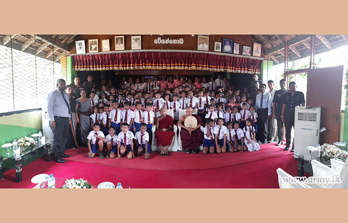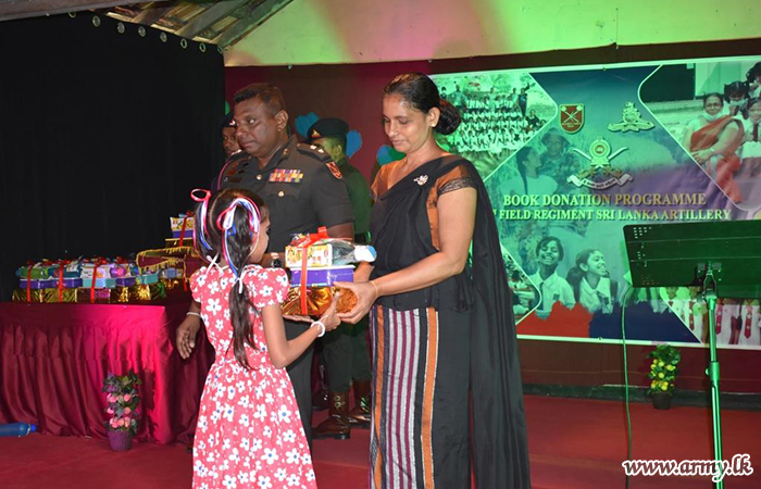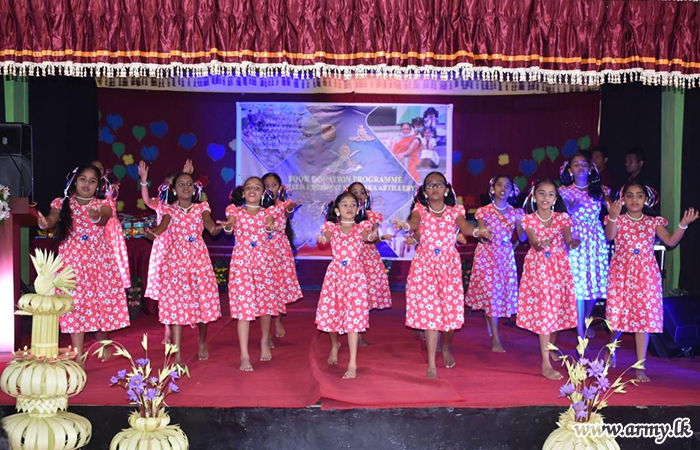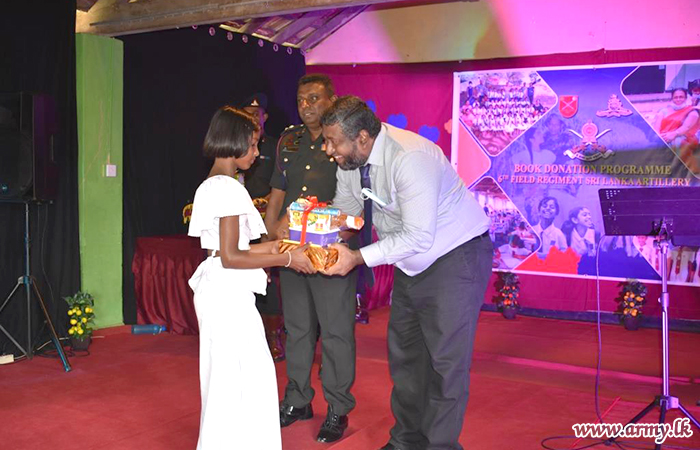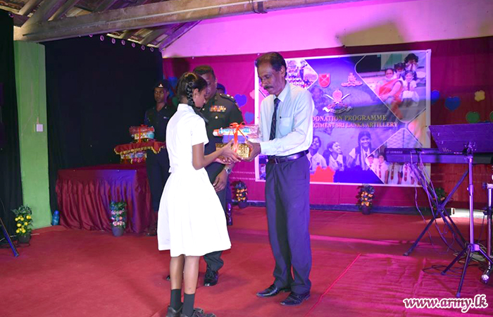 The brief distribution ceremony was attended by Major General Rohan Jayamanna as the Chief Guest with Commander of the 141 Infantry Brigade, state officials of the Educational Zone, the Principal, students, teachers and representative donors.