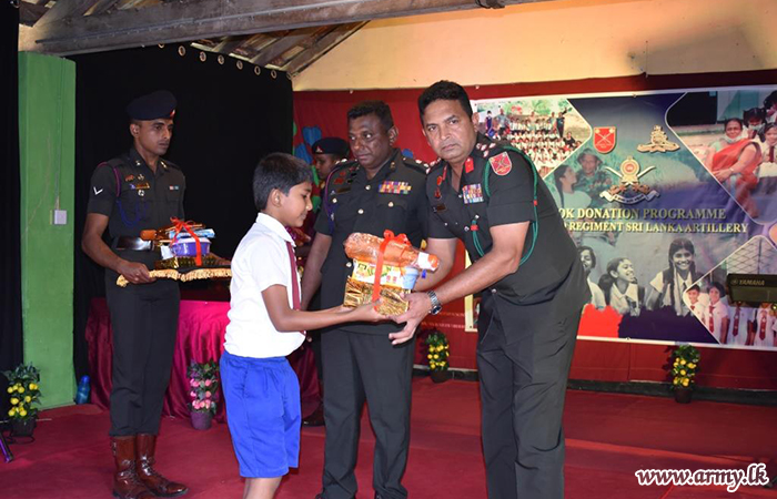 A programme to distribute a large stock of school accessories, including equipment, exercise books and other stationery items to the value of Rs. 488,000.00 among 130 school students at Dadagamuwa Junior Vidyalaya in Veyangoda got underway on 24 January 2023 through the coordination of the 6 Field Sri Lanka Artillery troops of the 141 Infantry Brigade under the 14 Infantry Division of the Security Force HQ-West.