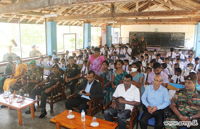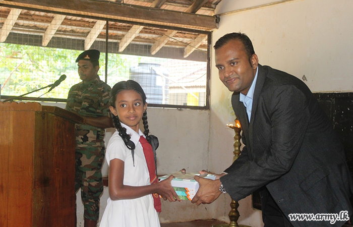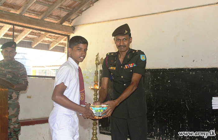 Lieutenant Colonel K.J.N.M.U.K Navarathna, Civil Affairs Officer attended the distribution ceremony as the Chief Guest along with Lieutenant Colonel R.N.C.Y Ramanayake, Commanding Officer, 7 Sri Lanka Artillery Regiment who toiled to make the project a success. Several Officers, Other Ranks, principal, and members of the tutorial staff attended the distribution ceremony.