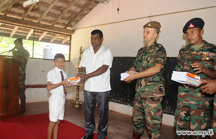 234 Infantry Brigade troops of the 23 Infantry Division under the Security Force Headquarters - East launched a programme to distribute school accessories among 77 students, studying at Galoya Maha Vidyalaya Galoya during a simple ceremony on Thursday (Jan 19). Each pack, worth about Rs 3000 included stationery, books, accessories, pens and pencils and the distribution was held at the school main hall.