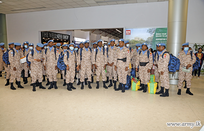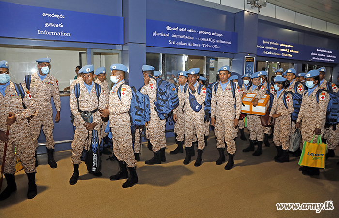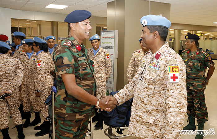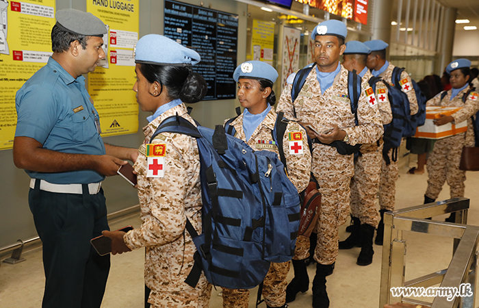 Representing the Commander of the Army, Brigadier Asanga Perera, Director at Directorate of Overseas Operations, Brigadier Mahen Salwathura, Centre Commandant of the Sri Lanka Army Medical Corps, together with Senior Officers saw the Sri Lankan contingent off at the Bandaranaike International Airport.
