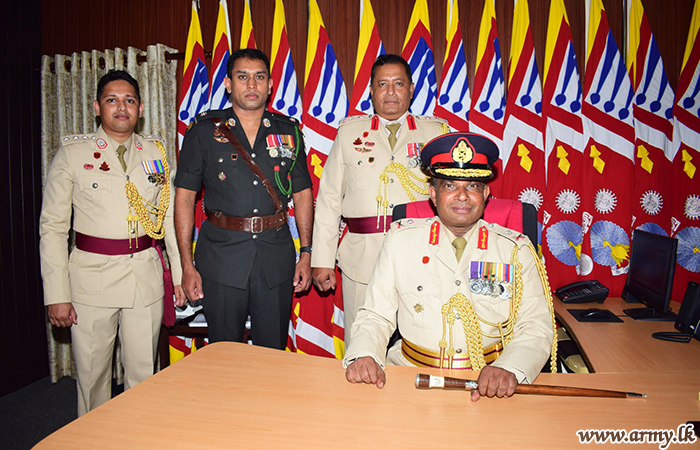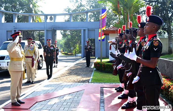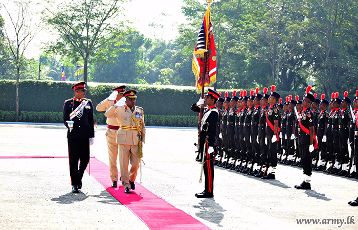 Moments later, he was saluted by GW troops at the parade square with a ceremonial Guard of Honour before he was invited to sit for a group photograph adding memories to the day. Afterwards, he symbolically accepted his new duties placing his signature in an official document amidst Pirith chanting of the members of the Maha Sangha.