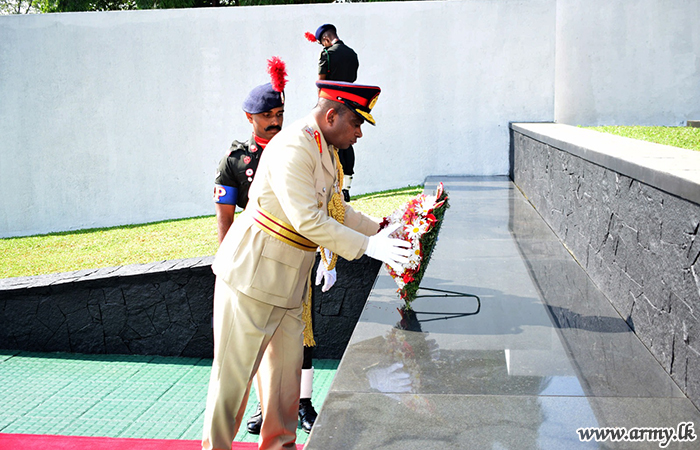 The programme began after a warm welcome was extended to the incoming Colonel of the Regiment by Brigadier Janaka Wimalarathna, Centre Commandant, GW. A colourful Guard Turnout at the main entrance saluted him before he paid a floral tribute to the fallen war heroes at the War Heroes' Monument in the camp premises.