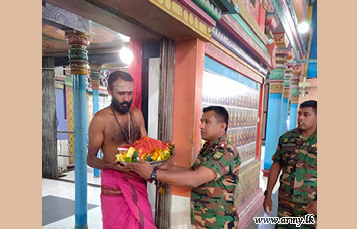 As the first segment, the Brigade commander and all Ranks of the Brigade on 13 March, conducted a ‘Bodhi Puja’ at Gookanna Raja Maha Viharaya in Trincomalee and offered ‘Heel Danaya’ (breakfast) to members of the ‘Maha sangha', the following day. In the same evening, religious observances were conducted at Koneshvaram Kovil and Gal Church in Trincomaleee.