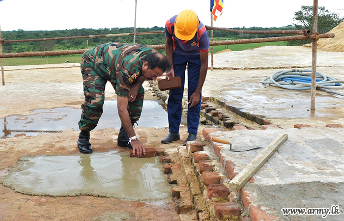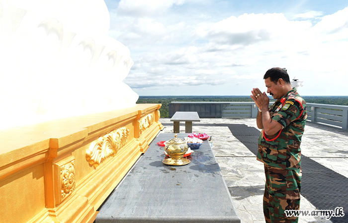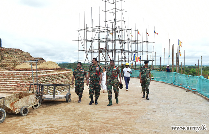 Major General Sujeewa Hettiarachchi at first visited 241 and 242 Infantry Brigades,18 Vijayabahu Infantry Regiment,8 Sri Lanka National Guard, 11 Battalion Sri Lanka National Guard and 16 Battalion Sri Lanka National Guard before he made a trip to the Muhudumaha Viharaya and Deegawaapi Temple in order to observe the ongoing Stupa construction project.
