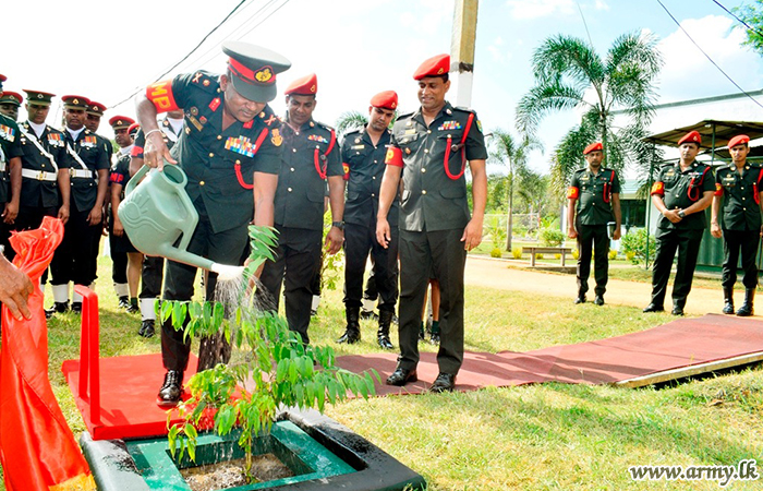 Major M.D.S.U.K Weerasinghe USP psc, the Commanding Officer, 3 SLCMP warmly welcomed Major General A.C.A De Zoysa USP HDMC Lsc on arrival. Afterwards, a group photograph was taken to mark his official visit to the location, followed by planting of a sapling inside the camp compound.