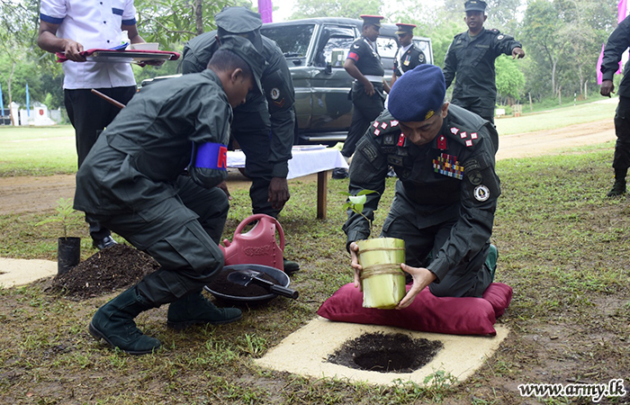 The Air Mobile Brigade Commander, Brigadier A.G.S.M Perera RWP RSP USP was saluted in a Guard Turnout at the entrance to the Brigade Headquarters on Saturday (April 29) before he took part in a tree planting programme where 29 saplings were planted to commemorate the anniversary.
