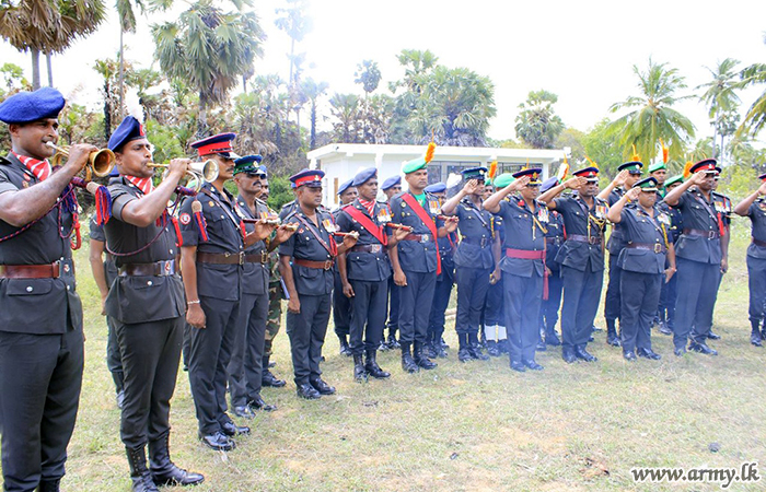 Troops of the 9 Sri Lanka Light Infantry Regiment of the 521 Infantry Brigade under the 52 Infantry Division in accordance with military traditions and directions of respective Commanding Officers in a military funeral saluted late Private Velupillai Amaranadan (Retd).