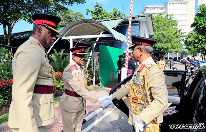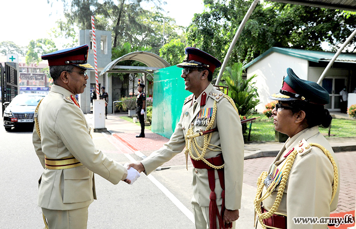 Upon his arrival at the Colombo Army Hospital compound, SLAMC troops presented a Guard Turnout salute. Afterwards, Major General P.A.C Fernando USP addressed the troops before he joined refreshments with All Ranks and interacted with those present at the location.