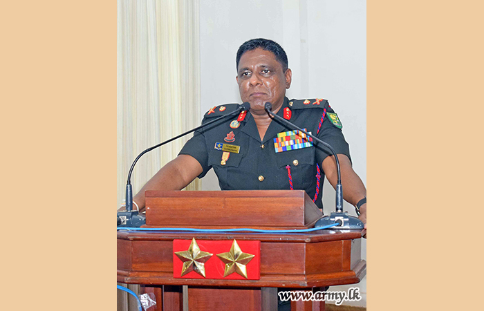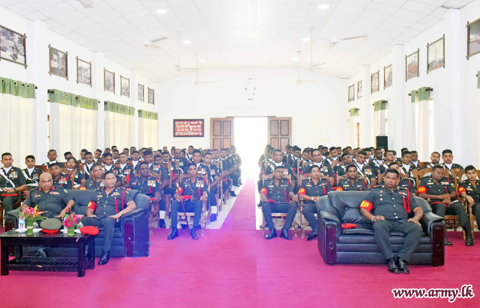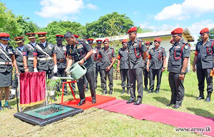 The Commanding Officer, Major M.D.S.U.K Weerasinghe USP psc, warmly welcomed Major General M.E.P Weerasinghe VSV USP ato on his arrival. After that, a group photograph was taken to mark his official visit which was followed by planting a sapling. Later, the Commander FMA (N/C) addressed the troops.