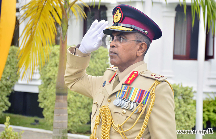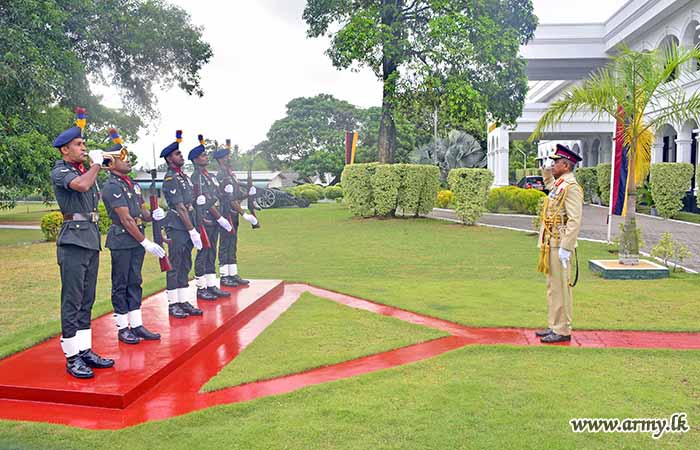 Troops of the Sri Lanka Army Medical Corps (SLAMC) upon arrival of their newly-promoted Colonel Commandant, Major General P.A.C Fernando USP at the Sri Lanka Army Medical Corps HQ premises in Werahera after receipt of new promotion insignia from the Commander of the Army, presented honours and greeted him in accordance with military traditions on 29 May.