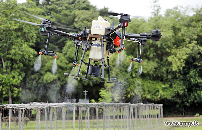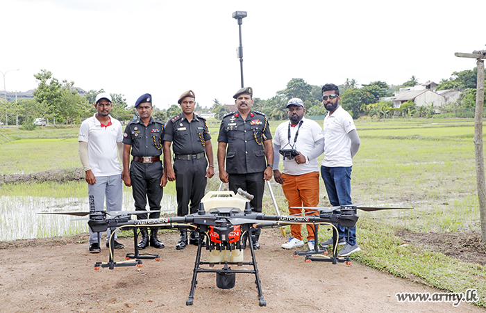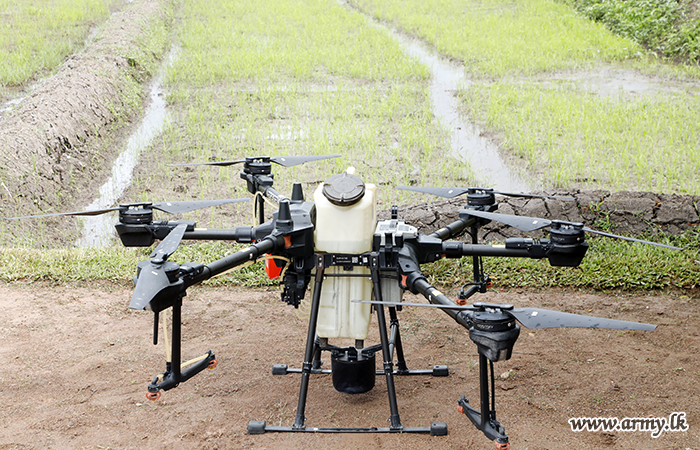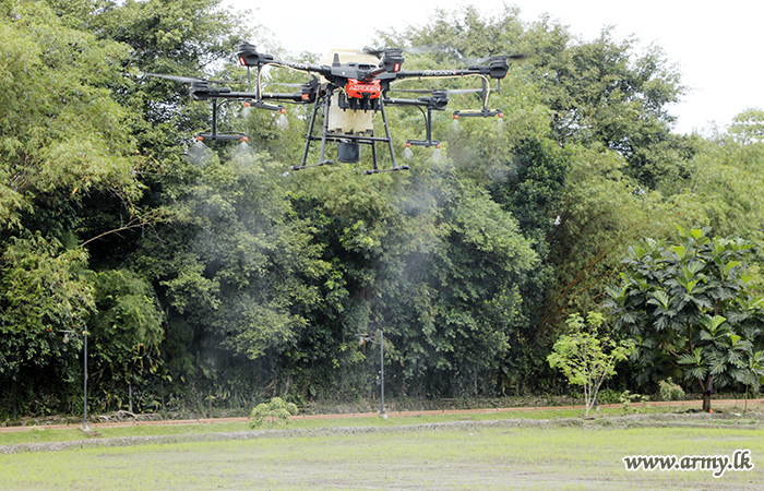 Adhering to most modern and scientific practices elsewhere, the Sri Lanka Army for the first time on Friday (June 02) morning used drone technology on experimental basis for spraying of insecticides and herbicides for Army paddy cultivations of 8.5 acres around the Army HQ complex in Sri Jayawardenapura.