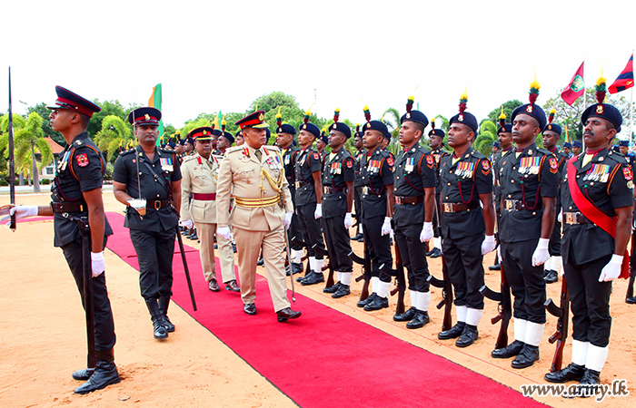 The newly-appointed General Officer Commanding of the 52 Division was warmly welcomed by Staff Officers and saluted in a Guard Turnout at the entrance before he was invited to receive the salute of the Guard of Honour, presented by Vijayabahu Infantry Regiment troops.