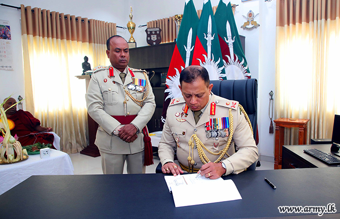 In his new office, the incoming GOC was invited to sign an official document to mark the assumption of his duties amidst ‘Seth Pirith’ chanting.