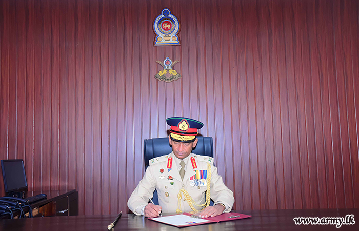 Moments later, amid religious rites and rituals, followed by the ‘Seth Pirith’ chanted by the Maha Sangha, Major General S.B Amunugama RWP RSP ndu assumed his new office by placing this signature symbolically in an official document on the auspicious minute.