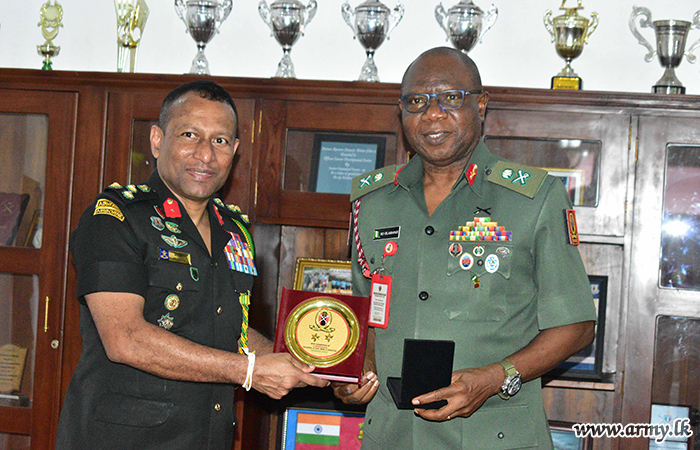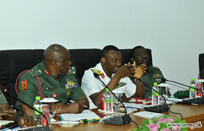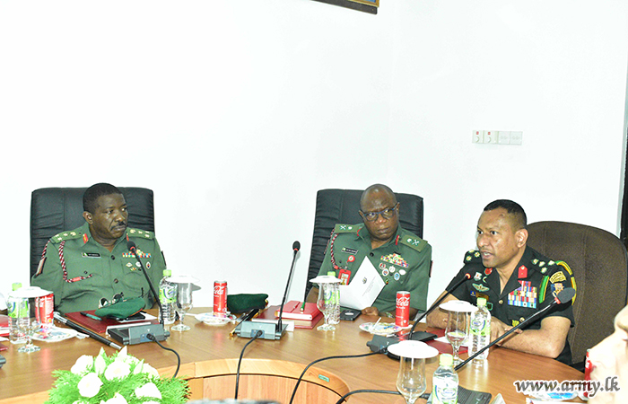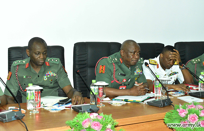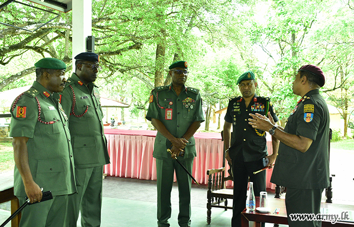 The defence delegation of Nigeria, headed by Major General SO Olabanji, Director of Nigerian Army Training and Doctrine Command made a visit to Army War College (AWC), Buttala on Thursday (08) as a part of their five-day familiarization tour in Sri Lanka. Brigadier U.K.D.D.P Udugama RWP RSP USP ndc psc, the Commandant, Army War College warmly welcomed the visiting delegation at the AWC Headquarters premises.