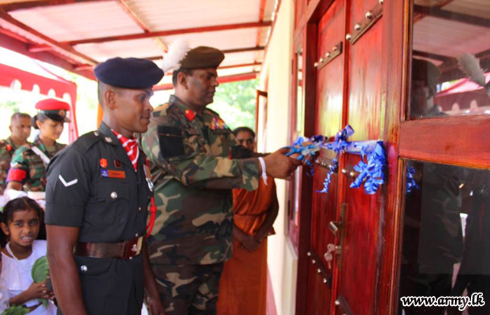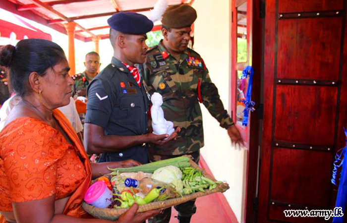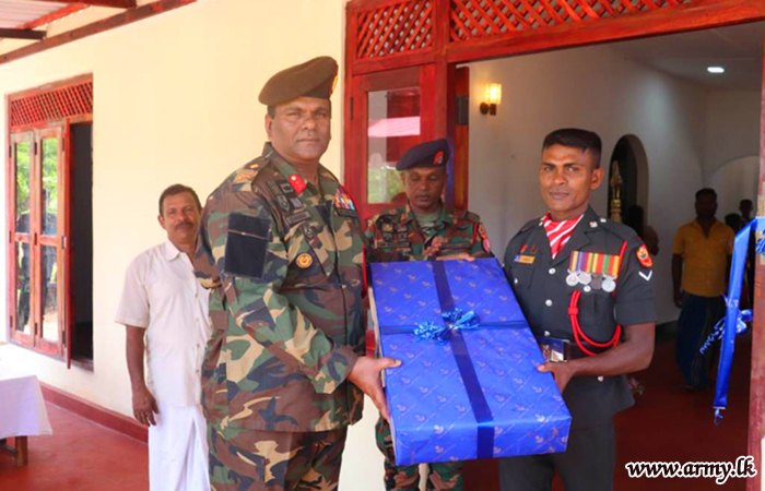 The new house, built at Anuradhapura, Mahadangaswewa was accordingly received by a deserving Non-Commissioned Officer of the 5 (V) SLLI Regiment who has been serving the Army for more than 14 years. He is married and blessed with one daughter.