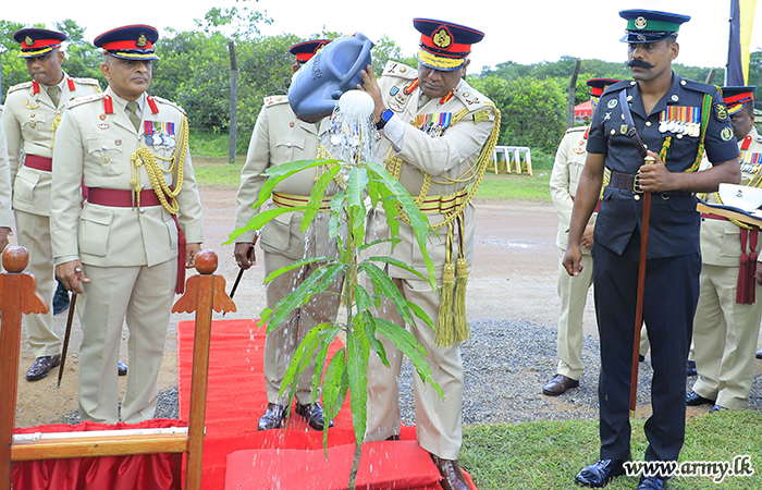 The new Commandant was then invited to plant a Mango sapling in the compound as an addition to the memory of his inauguration of the new office. Next, he formally addressed the troops and set out his vision for the future of the SLAVF. Towards the culmination of the day's proceedings, the new Commandant attended an All Rank tea with all serving the SLAVF HQ.
