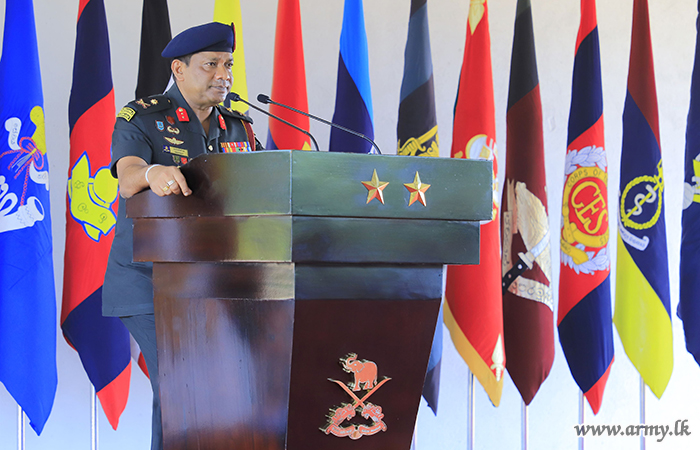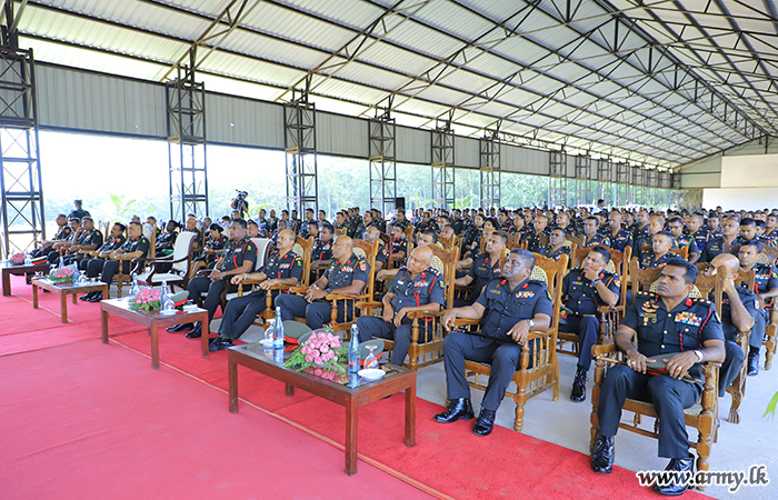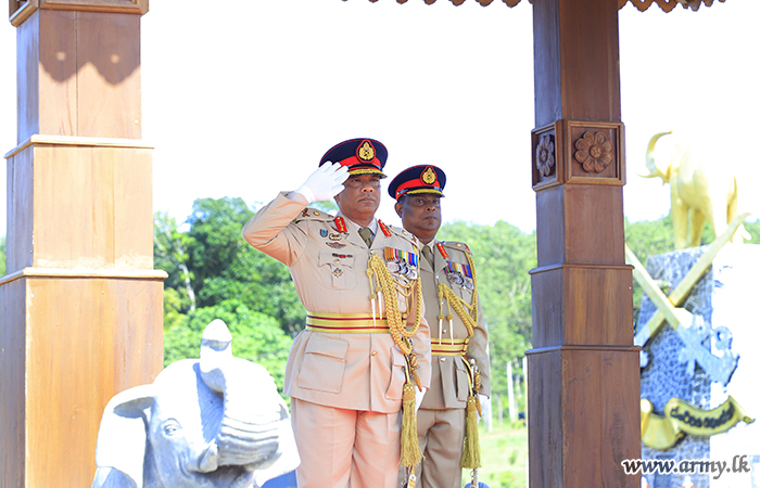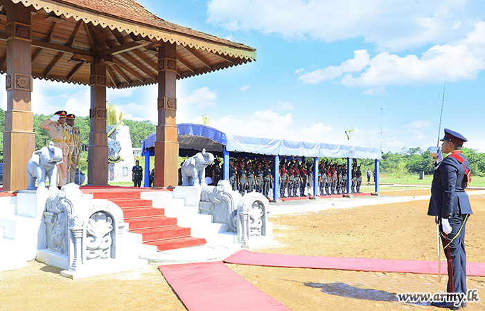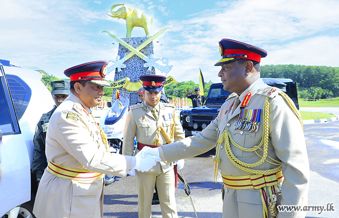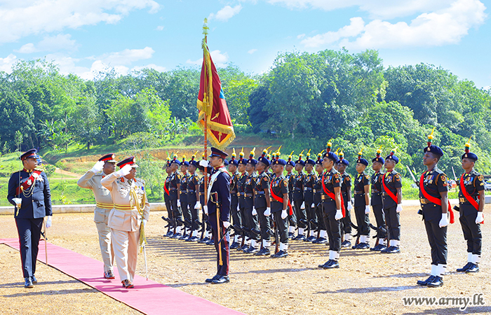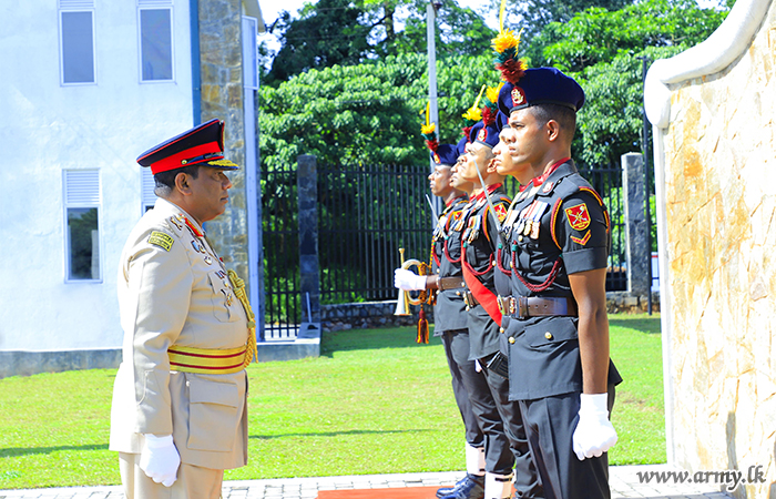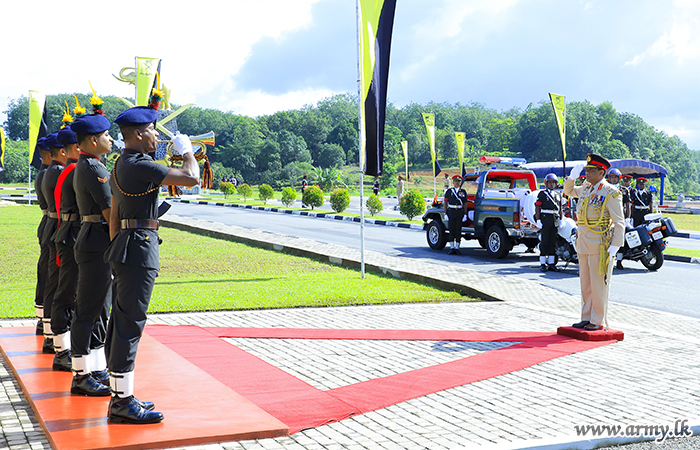 The day’s Chief Guest was warmly welcomed on arrival by Major General M.T.K R Silva KSP, Deputy Commandant of the SLAVF. In accordance with military traditions, troops of the Vijayabahu Infantry Regiment at the SLAVF presented a Guard Turnout at first. After a few minutes, the incoming SLAVF Commandant was saluted in a Guard of Honour in the parade ground.