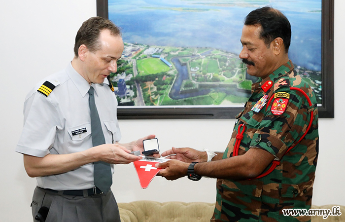The Defence Attaché of the Embassy of Switzerland in Colombo, Colonel Francois Philippe Garraux, paid a courtesy visit to the Security Force Headquarters - Jaffna (SFHQ-J) on Monday (12 June).