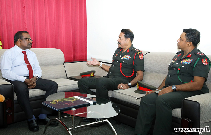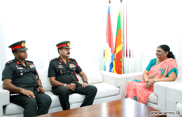 The newly-appointed Commander, Security Forces - Jaffna, Major General S.R.K Hettiarachchi RWP RSP VSV USP ndu psc on Wednesday (14 June) paid courtesies to the Chief Incumbent of Sri Nagavihara, Ven Meegahajandure Siri Wimala Thero, Hon Governor for Northern Province, Mrs P.S.M. Charles, District Secretary for Jaffna Mr. A. Sivabalasundran and the Chief Secretary, Jaffna, Mr. S. M. Saman Bandulasena.