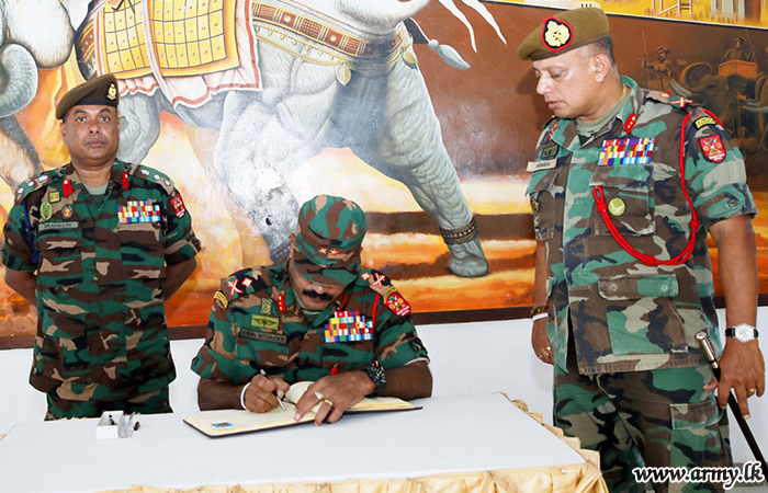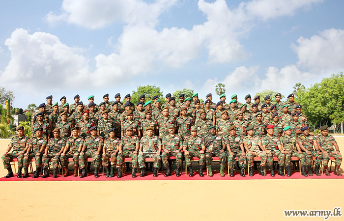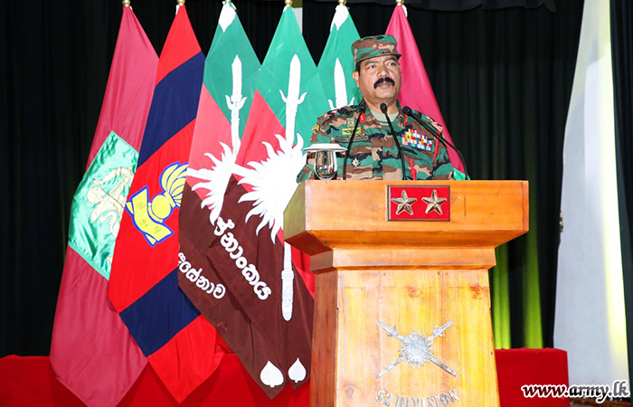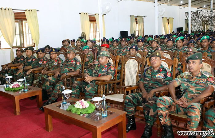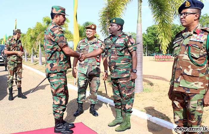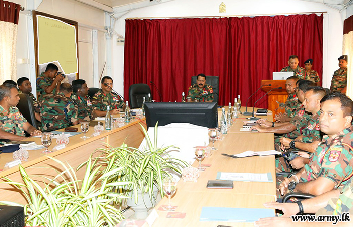 The Jaffna Commander on arrival was warmly welcomed by the General Officer Commanding, 52 Infantry Division, Major General Y.A.B.M Yahampath RWP RSP ndu psc before he received a briefing on the role and tasks, current affairs and projects, being performed by Infantry Division troops. Afterwards, he addressed all Officers and Other Ranks in the premises.