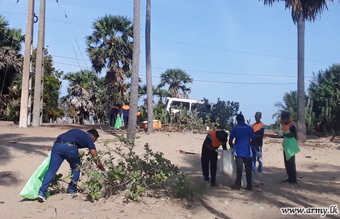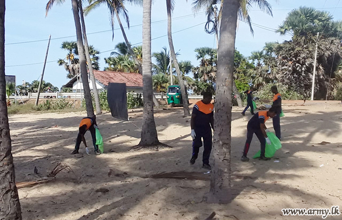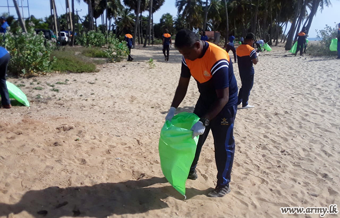 After the highly polluted nature of the beach was brought to the notice of the General Officer Commanding, 24 Infantry Division, Major General W Chandrasiri RSP USP psc, 11 Sri Lanka National Guard (SLNG) troops of the 241 Infantry Brigade were instructed to undertake the task under the supervision of the Commander, 241 Infantry Brigade Colonel L.S.D.N Pathirathna RSP USP and the Commanding Officer, 11 SLNG.