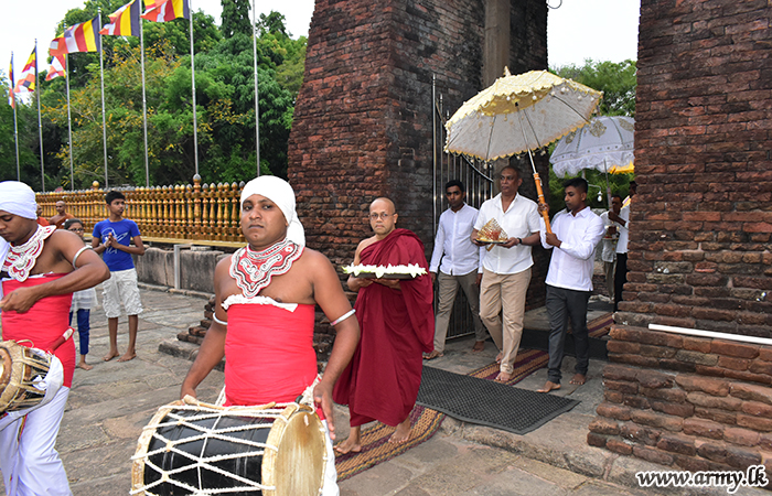 Meanwhile, during his visit Major General U.D Wijesekara RWP RSP USP rcds psc, Commander Security Forces-East paid obeisance to the sacred Seruwila temple and received blessings.
