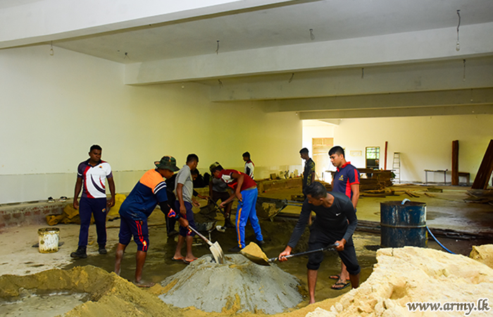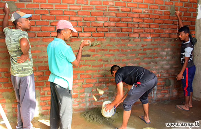 3 Officers and 30 Other Ranks, inclusive of the Corps of Engineer Services troops of the Security Force HQ-Central at the request of the monks plastered the 1st floor of the two-storied accommodation building (Sanghawasa) at Kahagolla Sri Gnanarama forest monastery and formally left it to the monks on Friday (June 09).