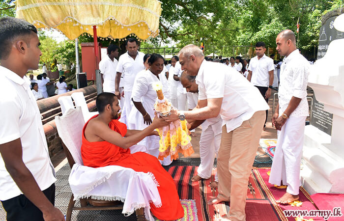 During his visit, he met the chief incumbent at Somawathiya temple where he had a cordial interaction with the monk before the Commander, Security Forces-East attended religious observances with several accompanying Officers.