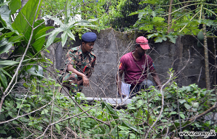 A group of Army personnel belonging to the 2 (v) Battalion Sri Lanka Light Infantry of the 144 Infantry Brigade of the 14 Infantry Division on Saturday (24) provided their assistance for a Dengue prevention campaign, organized by the officials at Gothatuwa MOH office in the Kelanimulla Grama Niladari Division in collaboration with Policemen of the Mulleriyawa Police station.