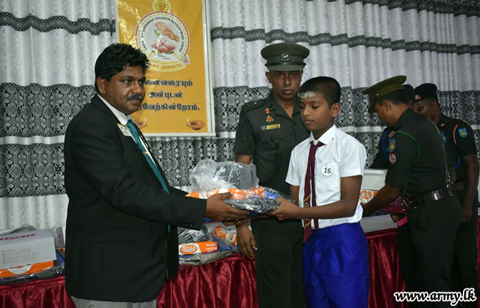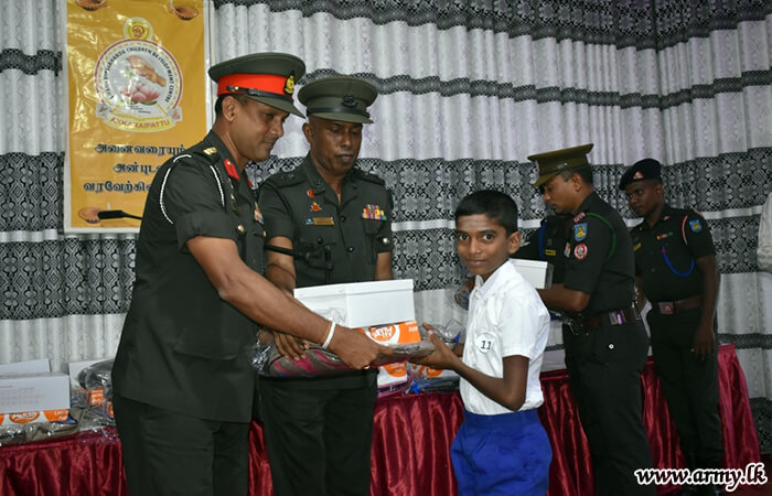 The 241 Infantry Brigade of the 24 Infantry Division under the Security Force HQ - East with the help of donors distributed a large stock of school accessories among 40 children at Swami Vipulananda Children‘s Home in Akkaraipattu on Saturday (24).