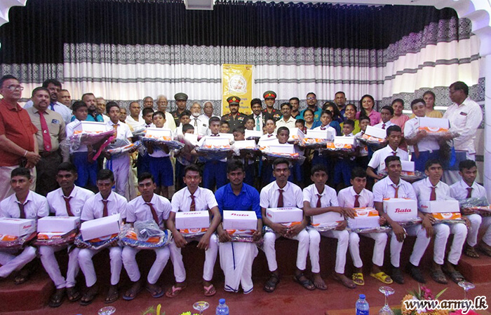 Accordingly, 40 students received school aid packs, each inclusive of a school bag, a pair of shoes and stationery, worth more than Rs 10,000.00. Colonel L.S.D.N Pathirathna RSP USP, Commander of 241 Infantry Brigade supervised the necessary arrangements and coordinated the project with the help of his troops.